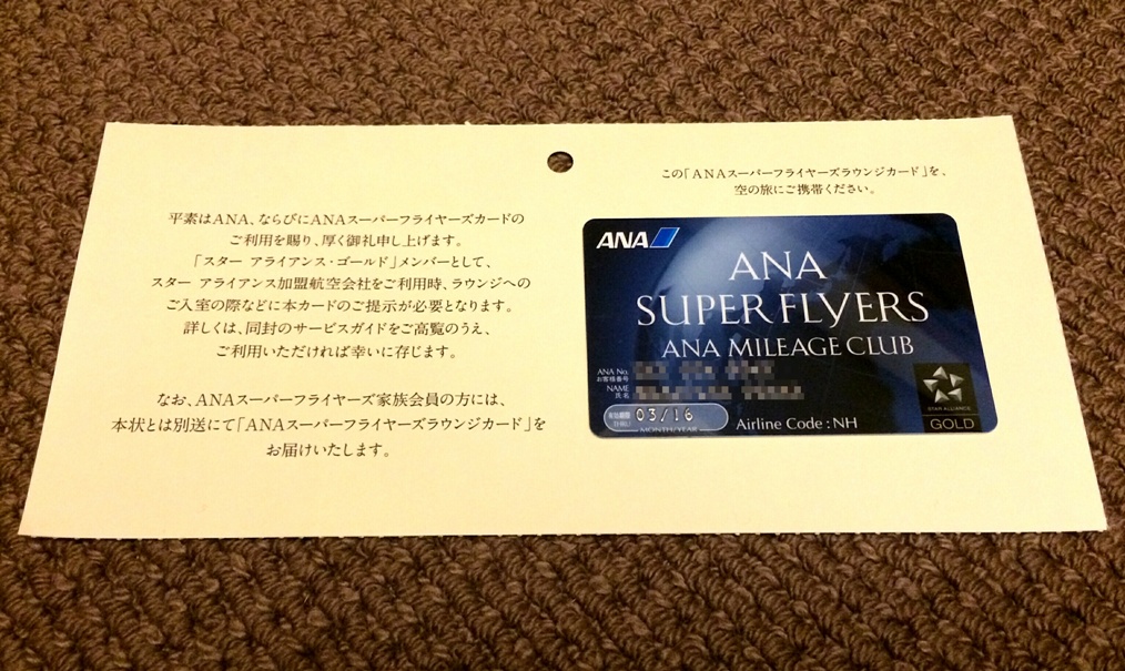 帰宅すると本題のラウンジカードが届いていました。