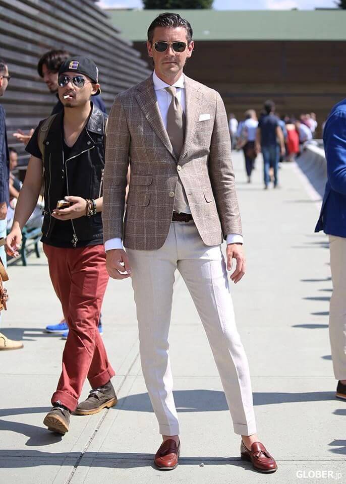 同じダークブラウンのスエードですが、タッセルだと着こなしの幅が広が