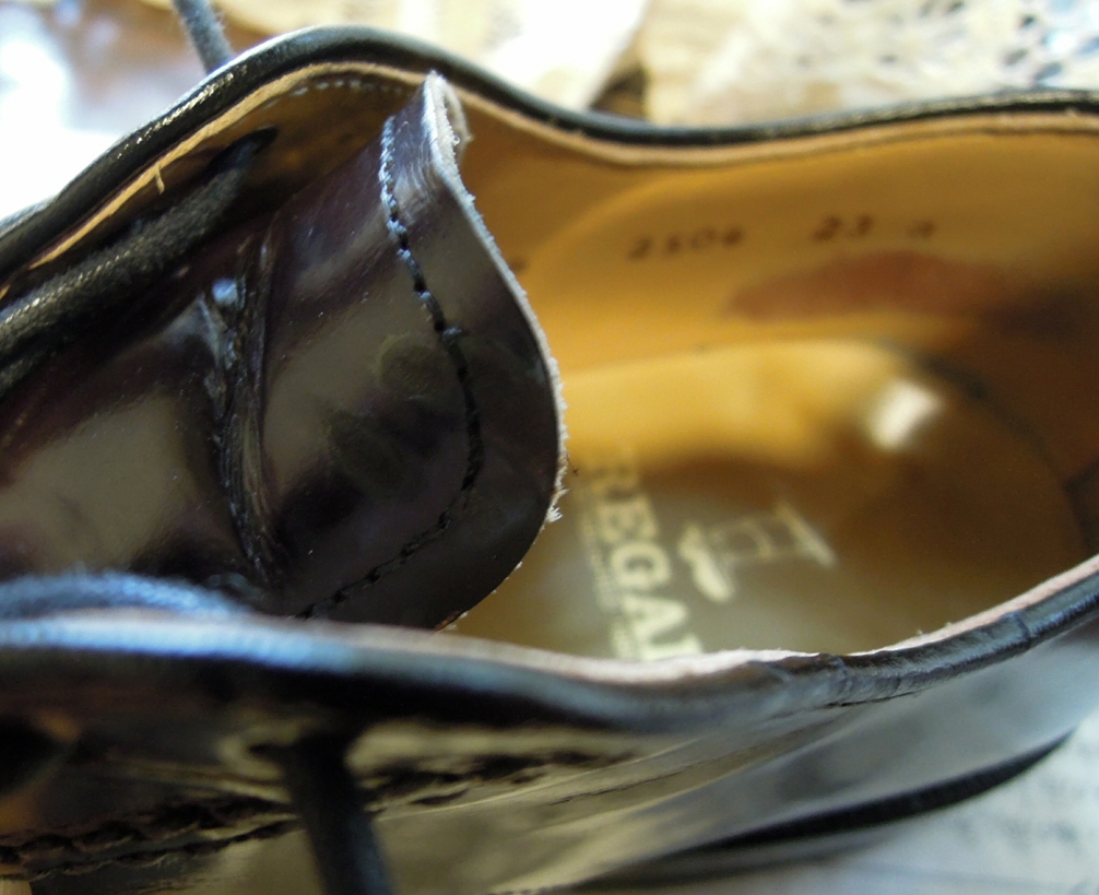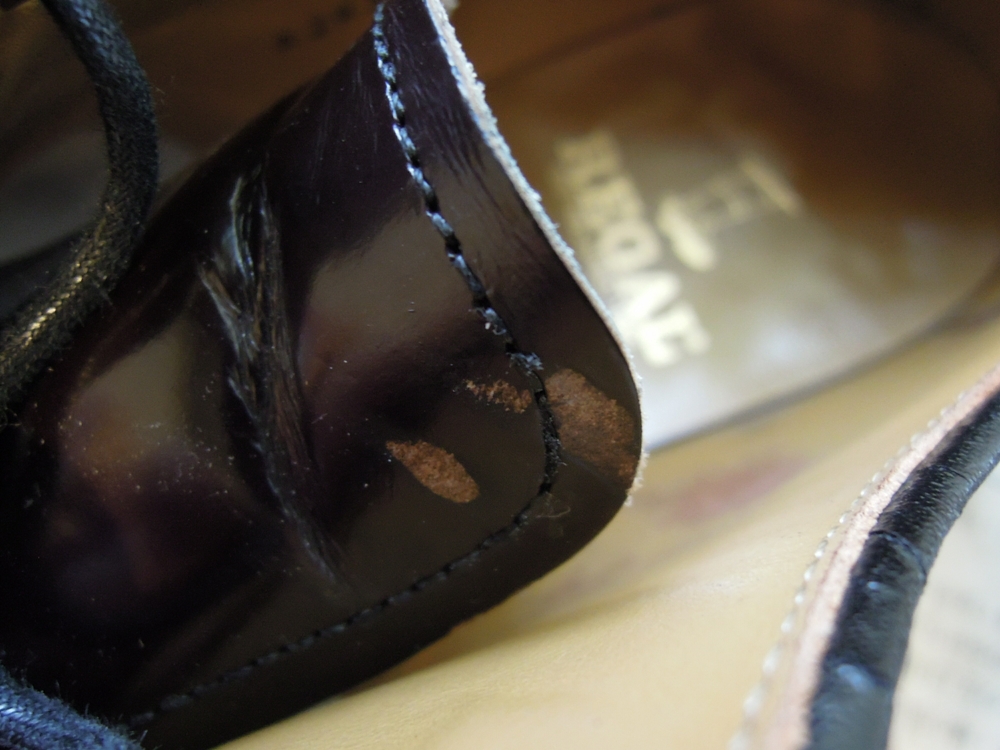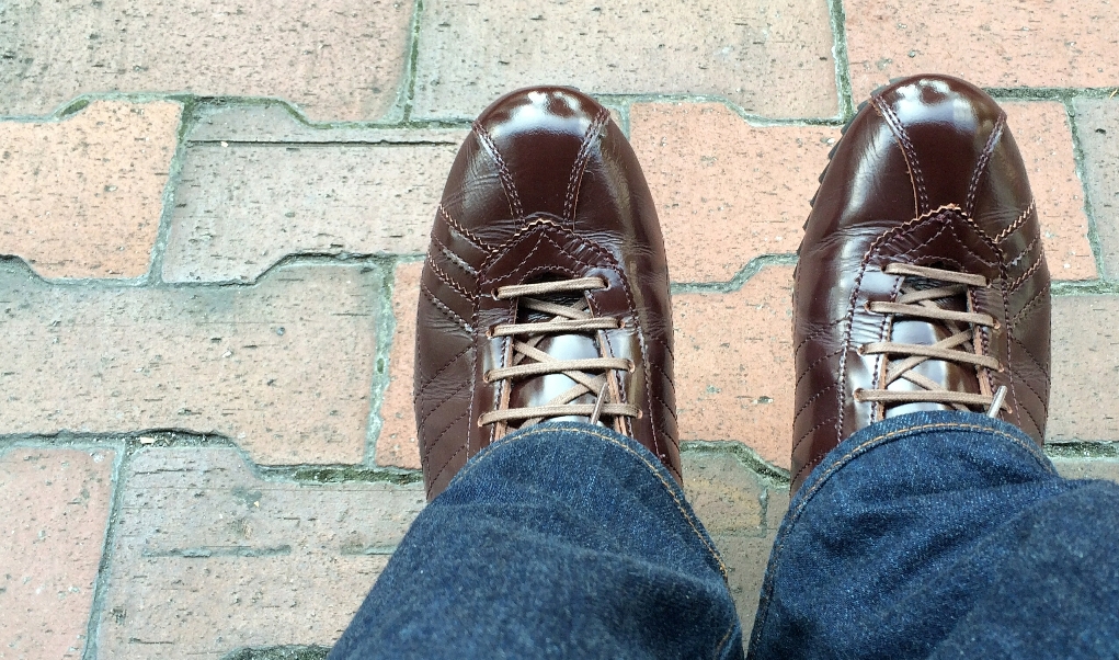 見た目はガラスがピカピカ~って感じですが、履きジワがついたり陽にあ